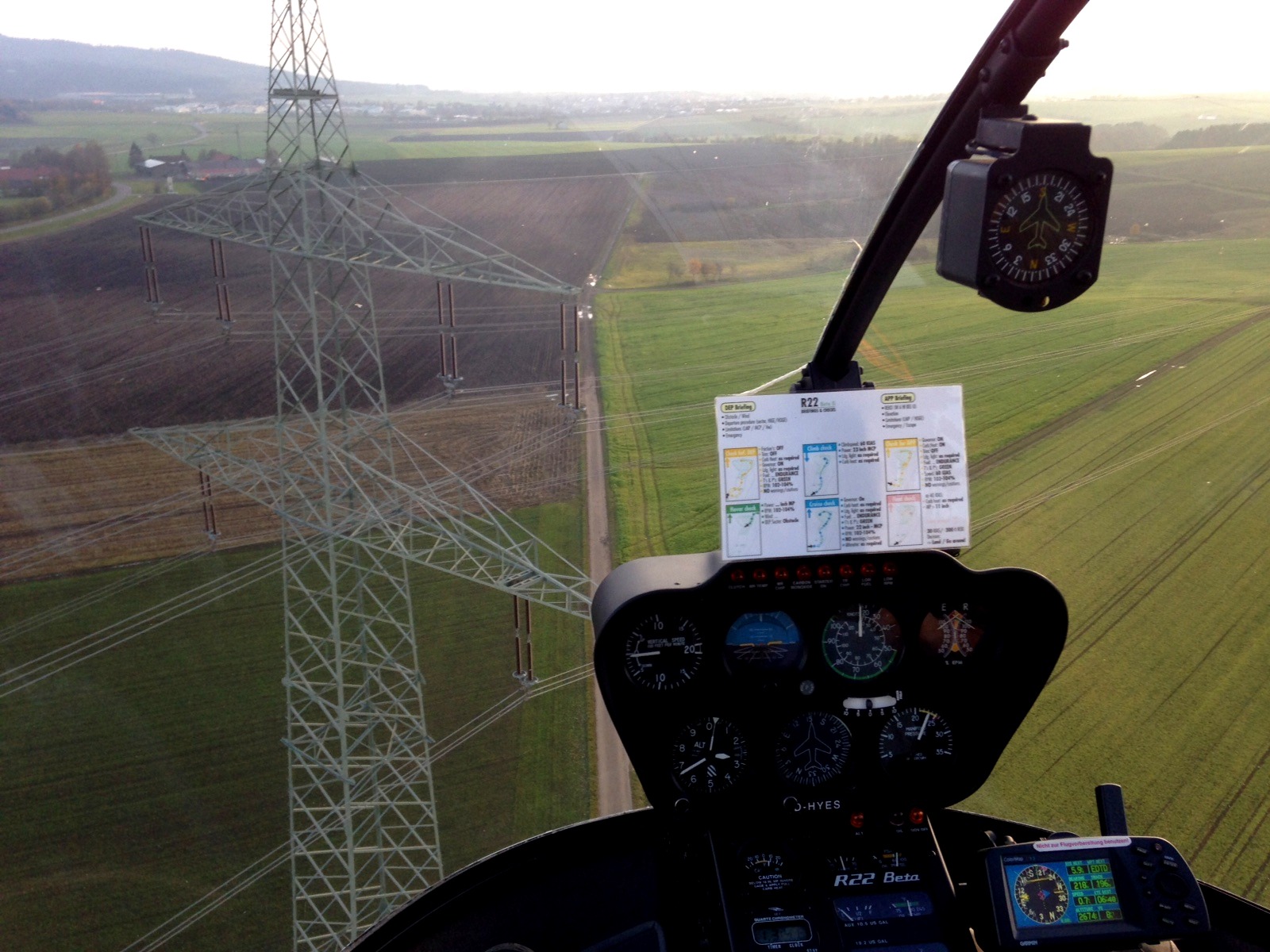 Gestern haben wir mit unserem Flugschüler Maik einen Kontrollflug von Hochspannungsleitungen simuliert. Während diesem 30 Minuten langen Übungsflug haben wir Hochspannungsleitungen abgeflogen. Dabei muss man die Nähe von den Hochspannungskabeln beachten. In der Realität ist die zweite Person mit einer Wärmebildkamera ausgestattet um kaputte Isolatoren ausfindig zu machen, dabei muss der Hubschrauber neben dem Strommasten vorsichtig schweben und später langsam an den Leitungspaaren entlang fliegen.