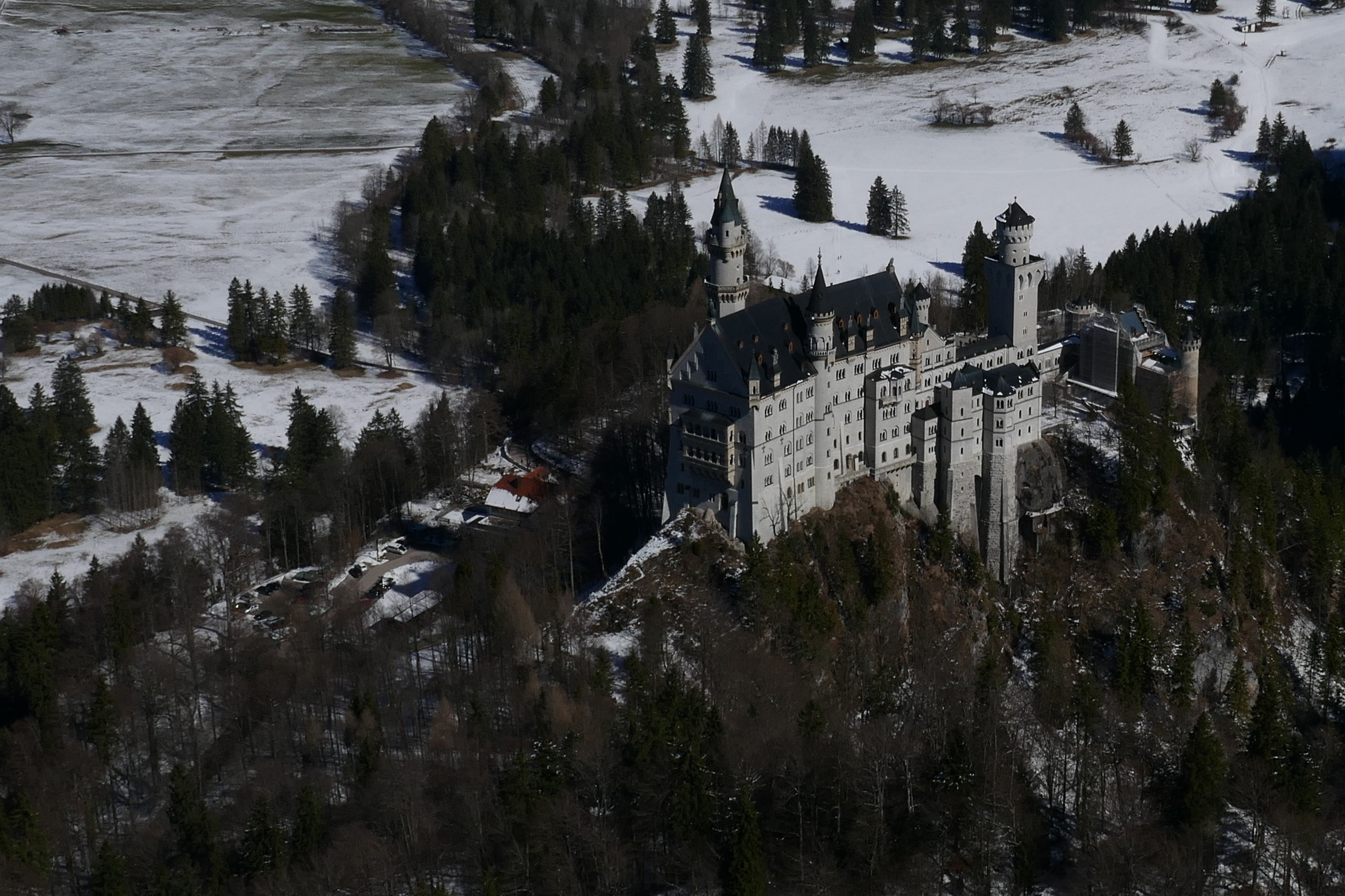 Begünstigt durch den Rückenwind geht es nördlich entlang der Alpen. Eine Runde um Neuschwanstein und Hohenschwangau – endlich einmal von oben.