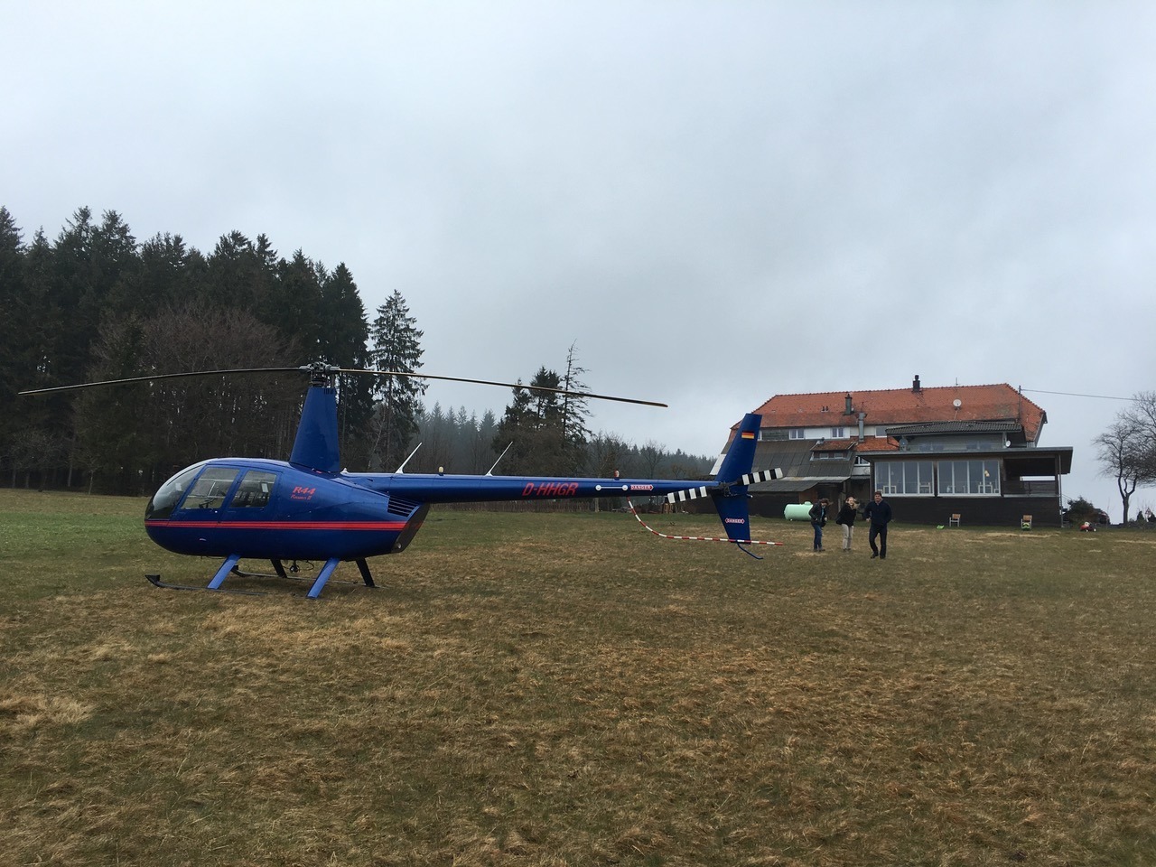 Als neue Übung haben wir einen Flug mit dem R-44 zum Höhengasthaus „Zum Kreuz“ in Oberbiederbach geplant. Schon am Tag zuvor hatten Herr Naujokat und ich telefoniert, da das Wetter nicht vielversprechend aussah. Trotzdem trafen wir uns pünktlich um 09:00 am Flugplatz in Donaueschingen.
