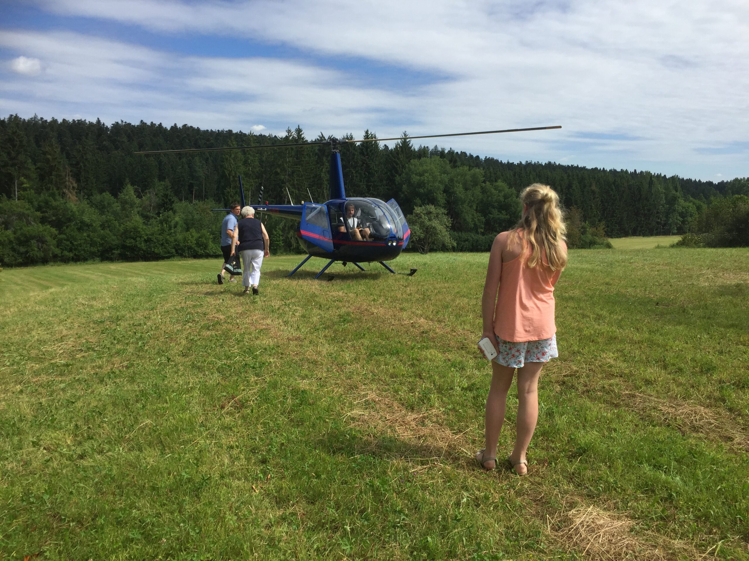 Personen aussteigen lassen und die neuen einsteigen übernahm in dem Fall mein Fluglehrer. Da es immer wieder zu unnötigen Flugunfällen kommt muss immer geschultes Bodenpersonal die Passagiere hin begleiten und auch wieder abholen.